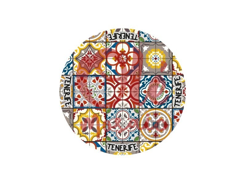 Te presento el posavasos de cerámica con un diseño de mosaico inspirado en los tradicionales azulejos de Tenerife, una pieza vibrante que captura la esencia cultural de las Islas Canarias. Este posavasos redondo destaca por su colorido estampado, que combina patrones geométricos en una alegre paleta de tonos rojo, amarillo, azul y gris. En el centro, la palabra «Tenerife» se presenta con letras decorativas, añadiendo un toque de singularidad a la pieza.