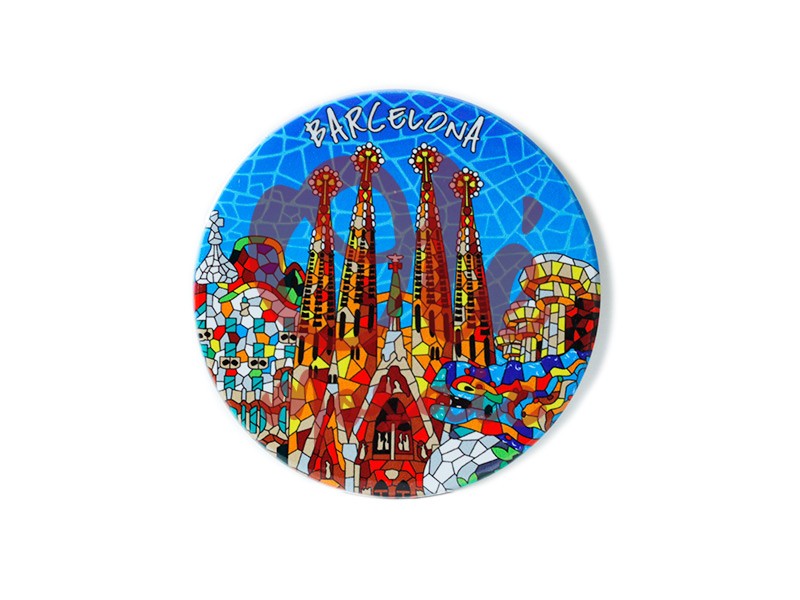Descubre nuestro posavasos de cerámica con una vibrante panorámica de Barcelona, una joya que captura la esencia artística de la ciudad. Este elegante posavasos presenta una colorida representación de la icónica Sagrada Familia, destacando su majestuosa arquitectura, y otros edificios emblemáticos que forman parte del paisaje urbano de Barcelona. Realizado en cerámica de alta calidad, el diseño de mosaico rinde homenaje al famoso estilo de Antoni Gaudí, incorporando una explosión de colores vivos, como el rojo, el amarillo y el verde, sobre un fondo azul, que evoca la vitalidad y el dinamismo de esta metrópoli catalana. La palabra «Barcelona» está grabada en la parte superior, añadiendo un toque distintivo y atractivo que lo convierte en un recuerdo perfecto.