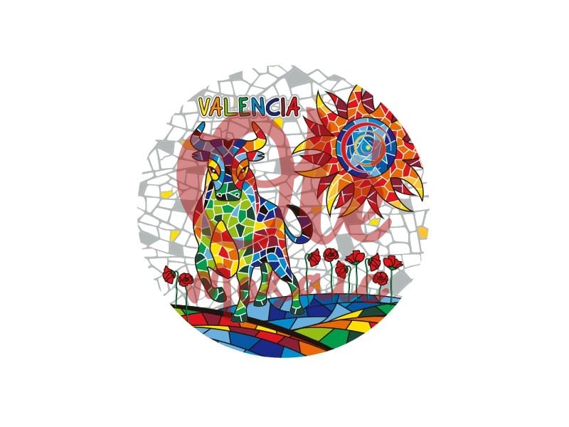 Este posavasos de cerámica, decorado con un vibrante diseño de toros, es un excelente recuerdo representativo de la rica cultura valenciana. La pieza presenta una colorida ilustración de un toro, símbolo icónico de la tradición española, con tonalidades brillantes que capturan la energía de la fiesta. Rodeado de un fondo de flores rojas y un sol radiante, este posavasos no solo es funcional, sino también una pequeña obra de arte que añade un toque festivo y cultural a cualquier mesa.