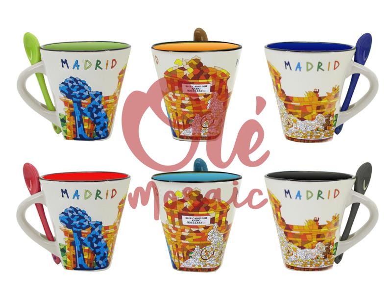 La palabra «Madrid» impresa en la parte superior de la taza ofrece un detalle adicional que la convierte en un recuerdo auténtico y representativo de la ciudad. Este souvenir refleja la rica cultura y tradición madrileña, siendo un excelente regalo para quienes buscan una conexión especial con la ciudad. En Olé Mosaic, nos especializamos en la distribución de souvenirs al por mayor, garantizando que cada pieza, como esta taza de cerámica, sea auténtica y de calidad. Ideal para tiendas de regalos turísticos que deseen ofrecer a sus clientes un pedazo de Madrid en cada taza.