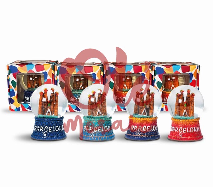 Esta bola de nieve decorativa, que captura la emblemática Sagrada Familia de Barcelona, es un recuerdo imprescindible para quienes desean llevarse un pedazo de la capital catalana. Fabricada en vidrio y resina, esta pieza destaca por su detallada representación de la icónica basílica, con sus majestuosas y coloridas torres y fachadas que brillan con la luz. Cada bola incluye la inscripción “Barcelona”, subrayando su conexión con el patrimonio cultural de la ciudad. Presentada en cuatro bases de colores —azul, rojo, naranja y verde—, esta bola de nieve no solo es atractiva a la vista, sino que también refleja la vibrante diversidad del arte y la arquitectura modernista que caracteriza a Barcelona.