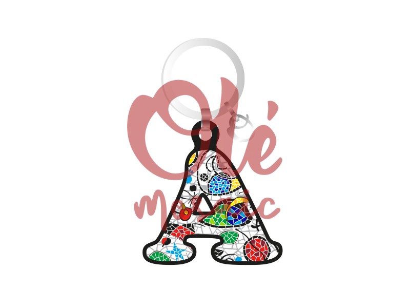 Olé Mosaic » Llaveros » Llavero de madera. Letra A. Mosaico.