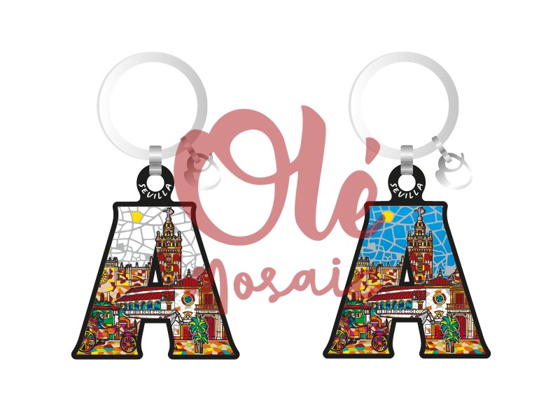 Olé Mosaic » Llaveros » Llavero de madera. Letra A. Sevilla.