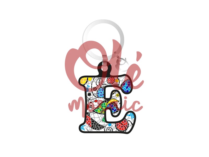 Llavero de madera con forma de la letra E, inspirado en el colorido mosaico típico de España. Este atractivo diseño presenta un acabado diseño artesanal, pintado a mano, con una variedad de colores vivos, como rojo, azul, verde y amarillo, sobre un fondo blanco. El detalle del trencadís evoca la esencia cultural de las obras de Gaudí, convirtiendo este llavero en un recuerdo encantador y funcional que resalta la creatividad y el arte español. Ideal para personalizar tus llaves o como un souvenir original.