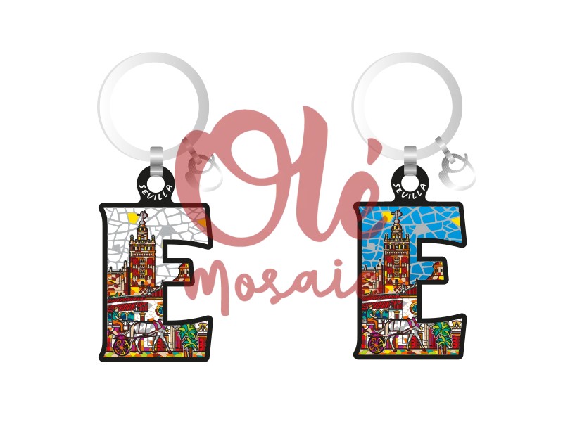 Olé Mosaic » Llaveros » Llavero de madera. Letra E. Sevilla.