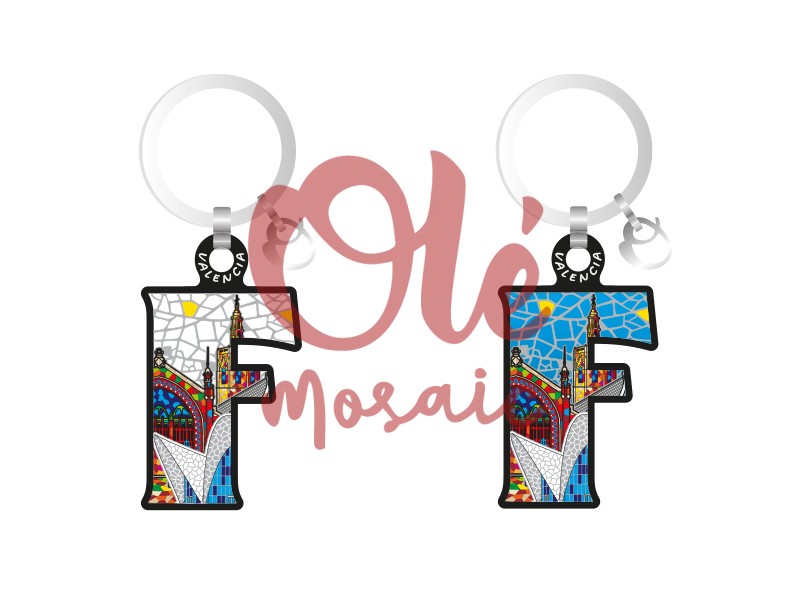 La letra «F» no solo actúa como una inicial, sino también como un homenaje a la ciudad, convirtiéndolo en un interesante motivo de conversación. Este llavero no es solo un accesorio práctico; es una pieza de arte portátil que permite llevar un trozo de la cultura valenciana a cualquier lugar. Ideal como souvenir, este llavero destaca por su autenticidad y su representación de lo mejor de Valencia, convirtiéndolo en una excelente opción para regalar o coleccionar. En «Olé Mosaic», ofrecemos una variedad de souvenirs al por mayor, incluyendo este llavero de madera, perfecto para tiendas de regalos turísticos que buscan productos únicos y culturalmente significativos.