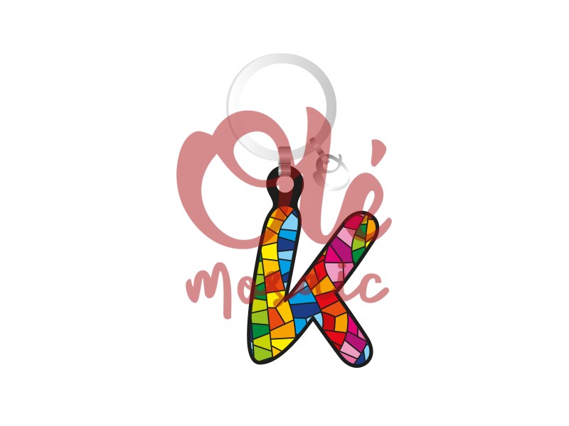 Olé Mosaic » Llaveros » Llavero de madera. Letra K.Mosaico.