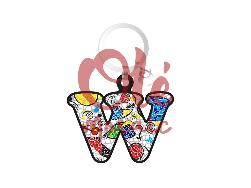 Llave de madera con la letra W, decorada con un diseño colorido que evoca el famoso trencadís de Gaudí. Este llavero presenta una mezcla de formas y colores vibrantes en tonos amarillos, rojos, verdes y azules, con toques de sombras y líneas que le dan un atractivo visual. Es un souvenir perfecto para quienes buscan un recuerdo de la arquitectura modernista de Barcelona, combinando funcionalidad y arte en un solo producto.