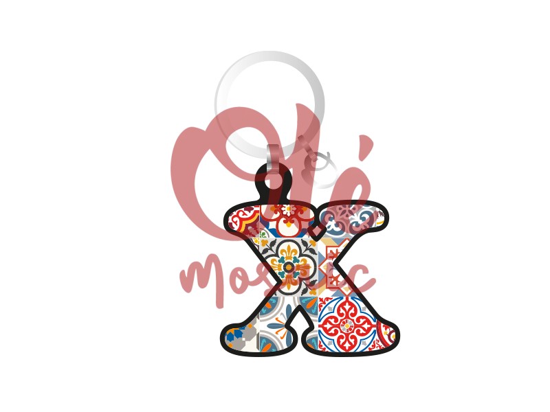Olé Mosaic » Llaveros » Llavero de madera. Letra X. Azulejos.